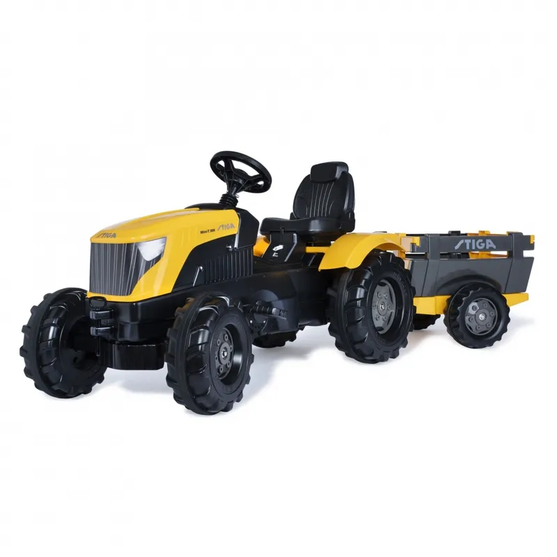 Stiga traktoriukas vaikams – smagiems užsiėmimams sode Jūsų mažiausiems! Stiga Mini – T 300 traktoriukas pagamintas iš tvirto plastiko. Aukšta sėdynė su reguliuojama padėtimi ir reguliuojami pedalai užtikrina papildomą komfortą, todėl tinka vaikui augant. Taip pat turi talpią išverčiamą priekabėlę. Tinkamas vaikams 3 – 8 metų amžiaus.