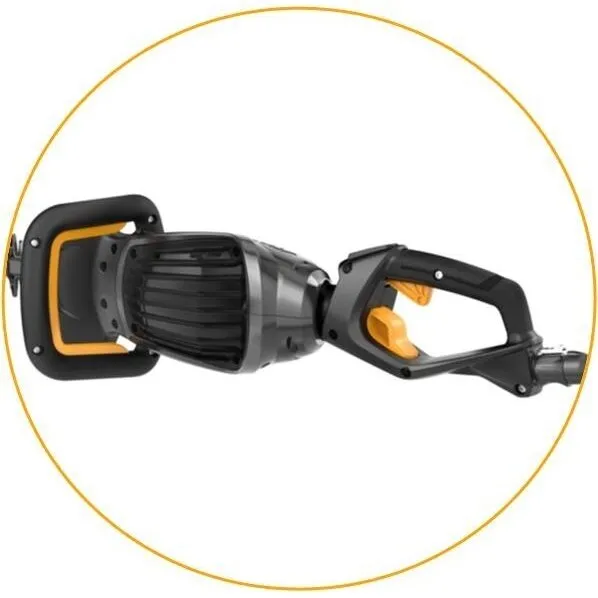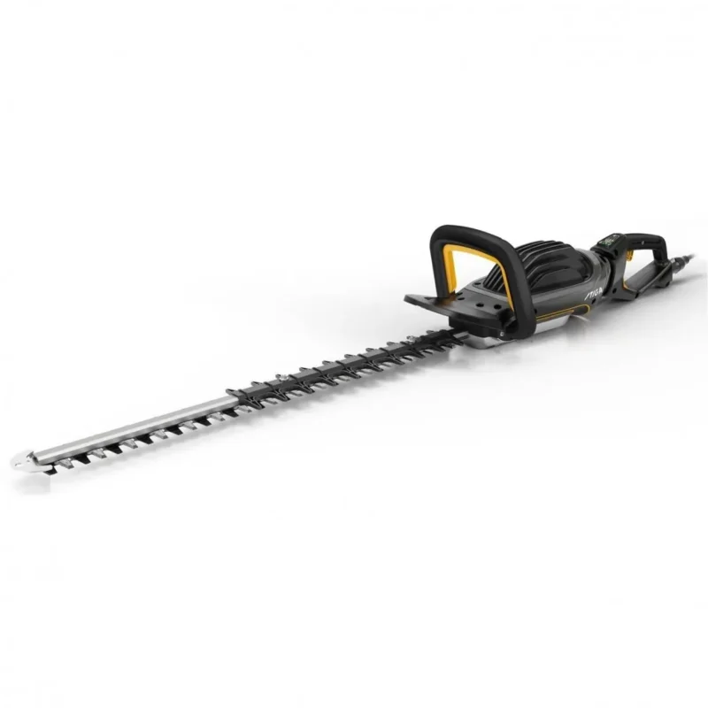 Naujosios 900-osios E-Power serijos gyvatvorių žirklės, veikiančios naudojant akumuliatorių kuprine. Tereikia prijungti maitinimo laidą ir įrankis jau paruoštas darbui. Inovatyvus dizainas, tvirta bet lengva konstrukcija, aukštas našumo lygis. Aliuminio bei karbono, 65 cm. ilgio, dvigubi, lazeriu grūdinti pjovimo ašmenys užtikrina itin tikslų pjovimą bei suteikia augmenijai tobulą formą. Dėka plačių 40 mm. tarpų tarp pjovimo dantukų šiomis žirklėmis nesunkiai galima nukirpti net iki 33 mm. storio šakas. Priekinė kilpinė rankena padeda išlaikyti patogią darbinę poziciją, o ašmenų apsauga – optimaliam saugumui užtikrinti. Daugiafunkcinę galinę, 180° kampu pasisukančią rankeną galima nustatyti į 3 skirtingas pozicijas, kad būtų galima atlikti įvairiapusį pjovimą, tuo pačiu leidžianti naudotojui išlaikyti natūralią rankos ir riešo padėtį dirbant. Taip pat galima pasirinkti vieną iš 3 veikimo greičių parinkčių, naudojantis intuityvia klaviatūra, įmontuota rankenoje. Pjovimo ašmenų apsauginis antgalis atlieka geležčių apsauginę funkciją nuo galimų pažeidimų pjaunant arti žemės ar sienų. Priklausomai nuo pasirinkto greičio galima dirbti net iki 3 val. su dviem E-Power 475 serijos akumuliatoriais, įstatytais akumuliatorinėje kuprinėje. Įkrovos lygį galima stebėti intuityvioje klaviatūroje. Baigus darbus, gyvatvorių žirkles galima pakabinti ant sienos už tvirtos kilpos rankenoje.