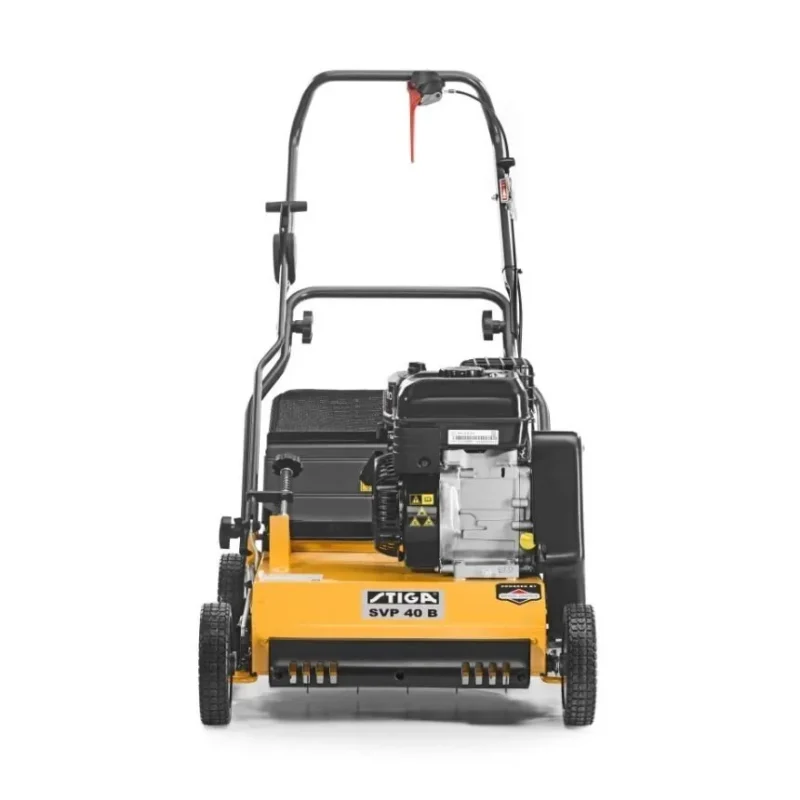 Benzininis Stiga SVP 40 G skarifikatorius, varomas Stiga TM 60 keturtakčiu varikliu, užtikrinančiu efektyvumą ir patikimumą. Jame įdiegti 32 „plaukiojantys” peiliukai, ypač kokybiškam aeravimui. Darbinis plotis – 40 cm. Darbinį gylį galima nustatyti į vieną iš 5 padėčių, nuo -15 iki 0 mm., taigi galima pasirinkti labiausiai tinkamą. Žolės liekanos ir samanos surenkamos į 50 litrų talpos krepšį.