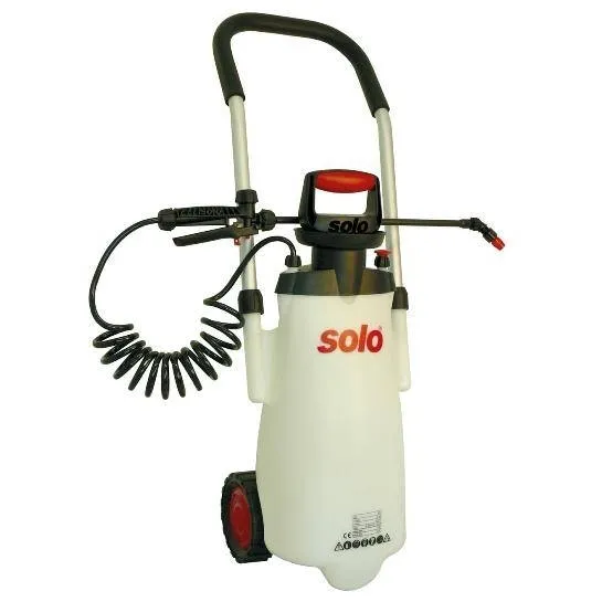 Naujasis Solo rankinis purkštuvas su primontuotais ratukais, leidžiančiais jį ypač patogiai transportuoti. Purkštuvo talpa – 11 litrų. Pateikiamas su 3 m. ilgio spiraline šlanga, bei 40 cm. ilgio purškimo vamzdeliu. Gali pasiekti 2 barų slėgį.