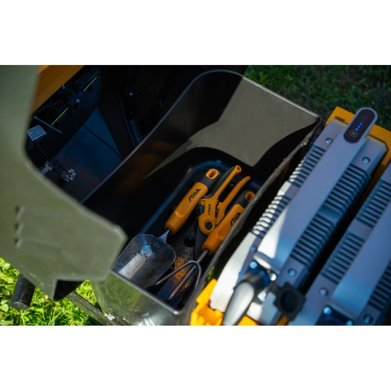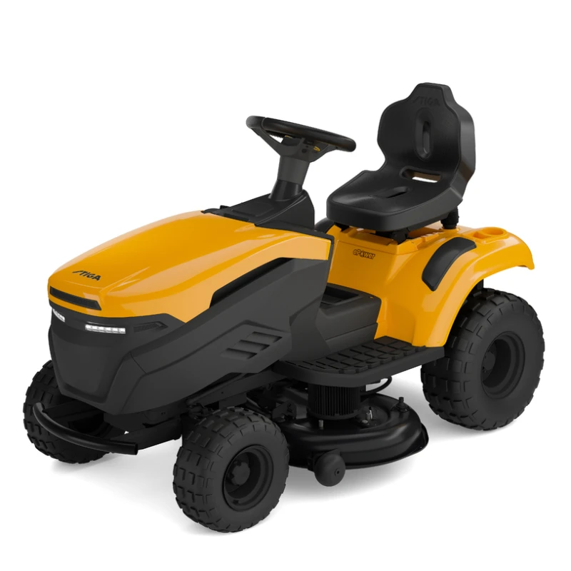 Stiga Tornado 398e – tai naujos kartos, inovatyvios sistemos traktoriukas akumuliatorinėje Stiga klasėje su naujuoju dalijamuoju „ePower Pro“ sprendimu. Naujoji „Power System“ sistema žymi reikšmingą poslinkį didžiųjų sodo įrenginių inžinerijoje. Ji taip pat apima naujuosius „ePower Pro“ akumuliatorius ir „Pro“ įkroviklius. Visa tai sukurta ir suprojektuota Stiga inžinierių komandos. Šis Tornado modelis savo privalumais netgi pralenkia panašius benzininius modelius, kadangi pasižymi tyliu veikimu, maloniu ne tik naudotojo bet ir kaimyno ausiai, patikimu bešepečiu varikliu, galia nenusileidžiančiu benzininiams, o taip pat ir minimalia technine priežiūra, kuri nereikalauja kuro papildymo ar susidėvėjusių dalių keitimo. Transmisija taip pat yra unikali, varoma elektriniu varikliu ir skaitmeniniu būdu valdoma su sukimo momento adapteriu, kad būtų užtikrintas sklandus ir lengvas užvedimas, veikiantis panašiai kaip hidrostatinė pavarų dėžė, tačiau dar lengviau ją valdyti. Varomas vienu arba dviem 56V – 40Ah Pro klasės ličio jonų akumuliatoriais, sukurtais ir ištestuotais Stiga technologų Italijoje. Vienu įkrovimu gali dirbti iki 60 min. priklausomai nuo žolės aukščio bei nupjauti iki 7000 m² ploto su 1 akumuliatoriumi arba iki 14000 m² ploto su dviem akumuliatoriais. Pateikiamas su dviejų peilių, 98 cm. pločio, tvirto plieno pjovimo deka, užtikrinančia puikius pjovimo rezutatus. Peiliai varomi dviejų elektrinių variklių, 3 kW galios. Pjovimo aukštis reguliuojamas 7 pozicijomis nuo 25 iki 80 mm. Deka taip pat turi du atraminius ratukus, kurie leidžia prisitaikyti prie nelygaus pjaunamo paviršiaus. Traktoriuko dizainas taip pat turi tokius privalumus kaip: virtualus ekranas, eko rėžimas, saugumo jutikliai, peilių paleidimo mygtukas, autopiloto funkcija, LED žibintai, visuomet matomas įkrovos lygis, USB jungtis. Traktoriukas taip pat turi „Bluetooth“ ryšį, todėl galima prijungti jį prie skaitmeninio įrenginio ir gauti momentinius techninės priežiūros įspėjimus bei atnaujinimus. Dar vienas privalumas, jog dekoje įmontuota apiplovimo jungtis, leidžianti greitai ir lengvai išplauti pjovimo agregato apačią po kiekvieno pjovimo, taip neprikaupiant įsisenėjusių nešvarumų (elektros komponentai pilnai izoliuoti ir apsaugoti).