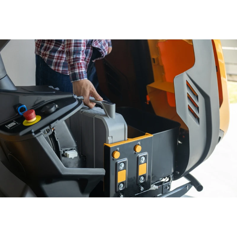 | Kitos savybės | Galimybė valdyti telefone per Bluetooth, eko rėžimas, virtualus ekranas, USB jungtis, darbo valandų matuoklė, įkrovos lygis, autopiloto funkcija, temperatūros jutiklis, priekinis bamperis, apiplovimo jungtis, dėtuvė daiktams, puodelio laikiklis, deka su dviem atraminiais ratukais, sėdynė su saugikliu, ergonomiškas vairas |
