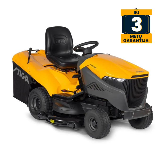 Traktoriuko ergonomiškas vairas yra patogus ir neslystantis, o reguliuojama Stiga sėdynė su porankiais ir paaukštintu atlošu suteikia komfortą. Ji taip pat turi apsauginį jungiklį, kuris automatiškai išjungia variklį ir pjovimo peilius, kai vairuotojas pakyla nuo sėdynės.
