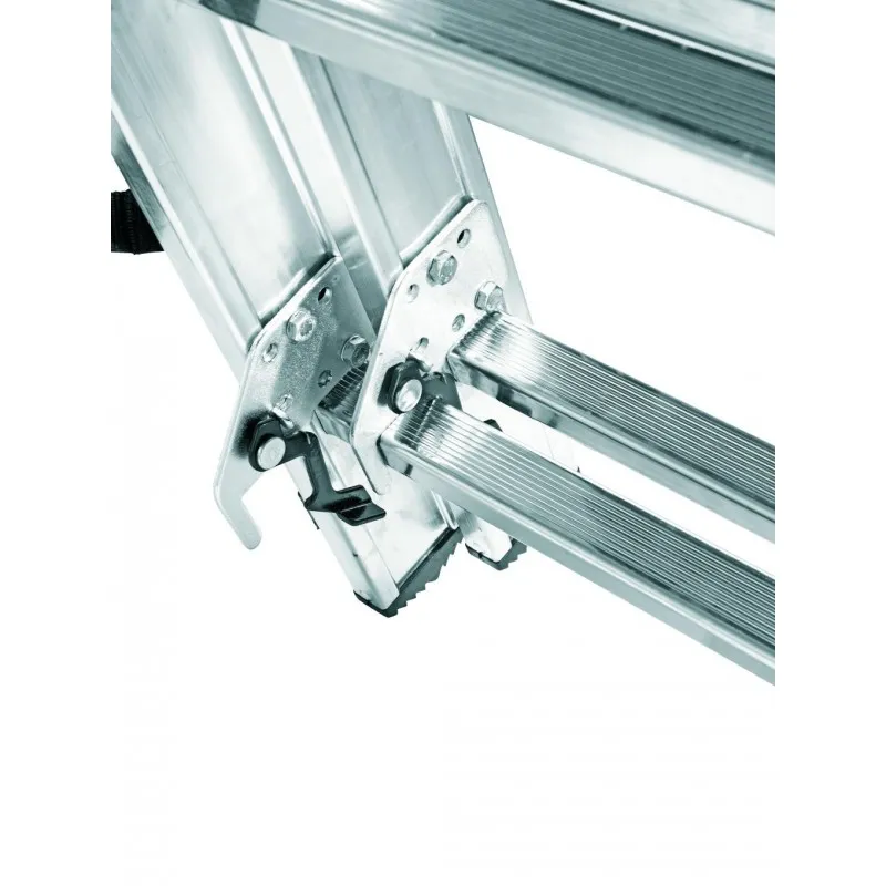 Šias ištraukiamas kopėčias galima pritaikyti reikiamam aukščiui pritvirtinant ties kiekvienu laipteliu. Itin aukštos kokybės aliuminis kartu su neslystančiais guminiais padais, skersinė papildoma atrama, patikimi įtempimo diržai bei tvirtas plieninis fiksatorius suteikia šioms kopėčios aukštą saugumo lygį.
