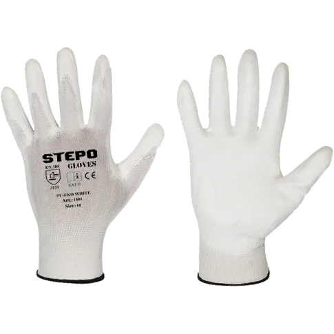 Poliuretanu aplietos nailoninės darbo pirštinės STEPO PU-EKO WHITE. Puikiai priglunda prie rankos, patogu suimti net ir labai smulkius daiktus. Poliuretanas išgarina drėgmę, todėl rankos mažiau prakaituoja.
